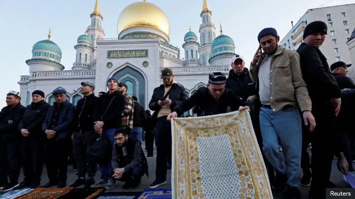 Ubwo i Moscou mu Burusiya, abayisilamu bagaragara bitegura gusenga mu gitondo cy’uyu munsi.
