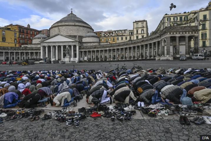 Ubwo Abayisilamu bari bateraniye hanze ya Plebiscito Square i Naples, mu Butaliyani