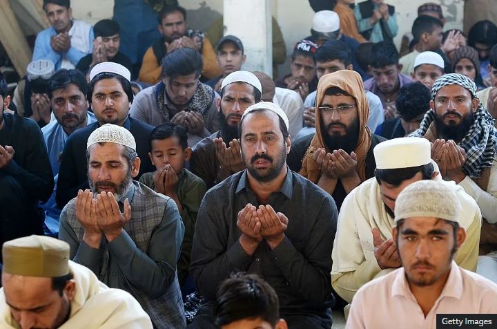 Impunzi zo muri Afuganisitani zisengera ku musigiti uri mu nkengero za Peshawar muri Pakisitani