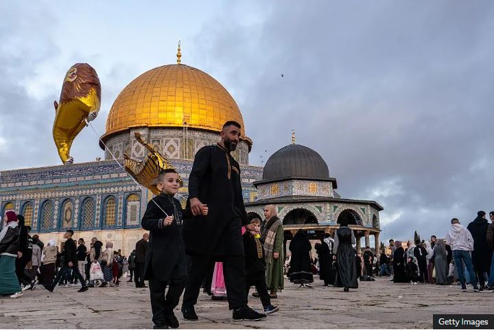 Imiryango yateraniye mu musigiti wa al-Aqsa i Yeruzalemu – ahantu hagatatu hakomeye mu idini ya Islam ku Isi.