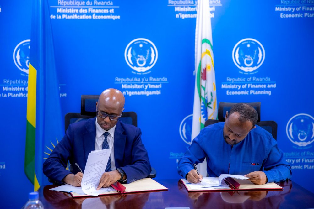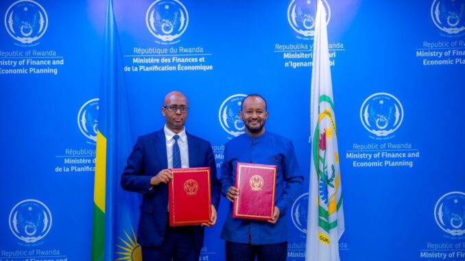 Yusuf Murangwa (ibumoso) na Dagmawi Habte-Selassie (iburyo) basinya amasezenao y’inkunga ingana miliyoni 78.5 z’amadolari